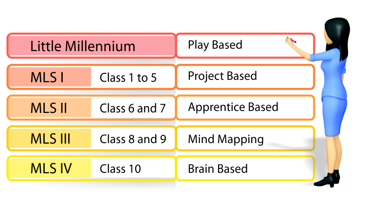 | The philosophy of the Millennium family is simple - Teach the way the child Learns, focussing on the philosophy that every child is unique. MLS is a scientific research based and award winning curriculum which is apt and loved by all children today. It is divided into five approaches. |